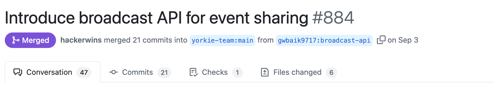 Yorkie JS SDK 내 Broadcast 기능을 어떻게 구현했는지 기술적 디테일보다는 기여하기까지의 과정을 기록하는 것이 더 의미가 있다고 생각이 들었다. 따라서 Issue 를 할당받고 최종적으로 PR 이 머지되기까지의 과정을 적어보고자 한다.